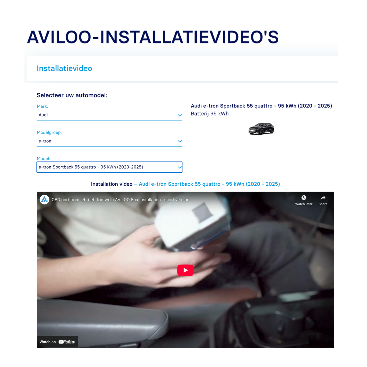Bekijk de installatie video per merk en model. Selecteer in de module je Merk, Modelgroep en dan Model om de instructievideo te bekijken.
